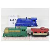 5 MARX O GAUGE: 800 Missouri Pacific Switcher, 702 Western Pacific Switcher, 20102 NYC Caboose