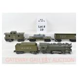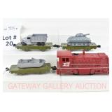 20 MARX O GAUGE: 112 Lehigh Valley Switcher, (3) 572M Olive Drab Flats/3 Different Army Loads