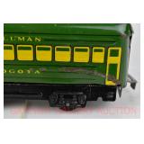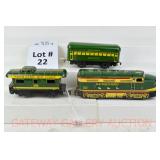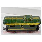 22 MARX O GAUGE: 4000 Seaboard Dummy Diesel (Some Rust Underneath), Green Bogota Pullman (Scratch on Side), 956 Seaboard Caboose (Scratches)