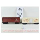 24 MARX O GAUGE: 20053 Seaboard Double Door Boxcar, 5595 Farm Master Brand Dairy Operating Boxcar (1 Repro Door)