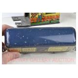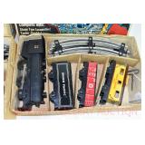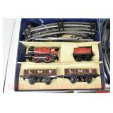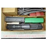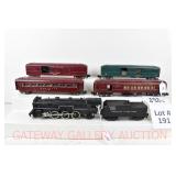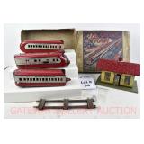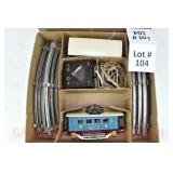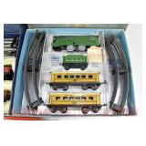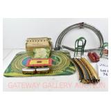 74 MISC WINDUP: Automatic Toy Co Mystery Alpine Express (NO KEY), Clockwork Engine and Coach (No Coupler or Key) and Track, 8 Sections Marx Speedway Track