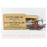 37 MARX O GAUGE: 2002 Electric Hand Car/Brown w/Gray Men OB/Insert