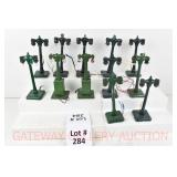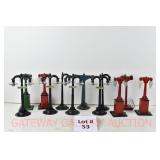 53 MARX O GAUGE: (3) 408 Red Twin Lamp Posts, 408 Green Lamp Post, (4) 429 Twin Lamp Posts, (2) 419 Lamp Posts, 4 Bulb Street Lamp