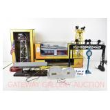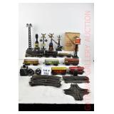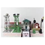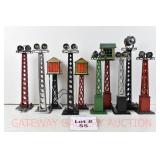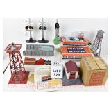 394 Marx O Gauge: (2) Marx Control Tower, Rotating Beacon, (2) Ringing Bell Crossing Signal, Block Signal (No Lamps), Police Box Lamp Post, 2 419 Lamp Posts, (4) Dual Lamp Posts, Lockon No Boxes