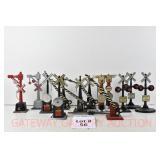 54 MARX O GAUGE: 1404 Position Light Block Signal/Control, (2) 434 Automatic Block Signals, 439 Automatic Semaphore, 454 Automatic Block Signal, 410 Electric Searchlight, 420 Circuit Breaker, 409 Twin Light Caution Signal, 404 Electric Block Signal (Amber Bulb Missing), 1404 Gray Plastic Position Light Block Signal