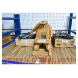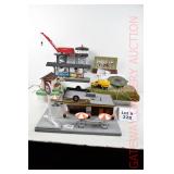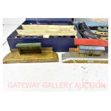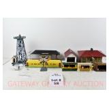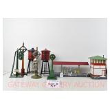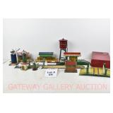 59 MISC AMERICAN FLYER: 104 Kenilworth Station, Freight Station w/Crane, 585 Tool Shed, 91 Flyer Town Depot, 90 Hyde Park Station, 234 Suburban Station, 220 Clock Sign, 206 Railroad Crossing Sign
