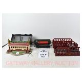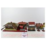 71 BUB O GAUGE: Station, Marklin Station, Bing Interlocking Tower, Crossing Gate And Shack, (2) Railroad Signs, Hand Operated Semaphore