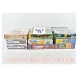 72 HO BUILDING KITS: Model Power 428 Water Tank And Shed, Heljan 1776 Gas Station, AHM 5732 Medford Yard Bldgs, Life Like 1348 Trackside Shanties And 1349 Oil Company, Heljan House, Pola 354 Signal Box, Life Like 1357 Clipper Mill Plumbing Supply, Minikits 5867 Plastic Factory/Silos All Factory Sealed in OB