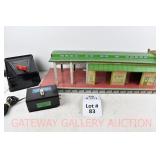 83 MARX O GAUGE: 5420 Freight Terminal, 1859 150 Watt Transformer, 1669 100 Watt Transformer