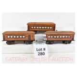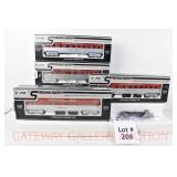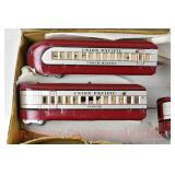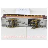 364 American Flyer S Gauge: (4) Maroon Stripe Cars: 960 Columbus Combo Car, (2) 961 Jefferson Pullmans, 963 Washington Observation; 3 Aristo-Craft Street Lamps OB