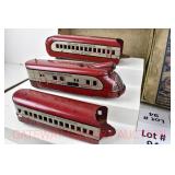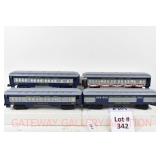 10 MARX O GAUGE: (2) 234 NYC Vista Domes, 234 Coach, "Meteor" Observation (Some Passenger Strips Loose)