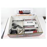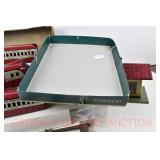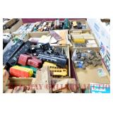 UNCATALOGED: Over (350) tray lots will be offered after the regular auction items are sold. They consist of framed railroad pictures, All gauges of rolling stock and engines, ,bridges, train parts of all gauges, HO Trains, O Scale Equipment and train parts, Railroad books and magazines, Brass locomotives and parts, Shelving For trains, All types of transformers, accessories of all scales, toy cars and trucks, Christmas Village buildings, HO Train sets, and Plasticville buildings. Uncatalogued traylots sold after catalog items - no online bidding for uncatalogued traylots
