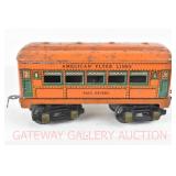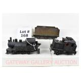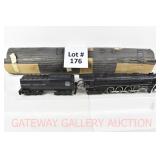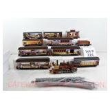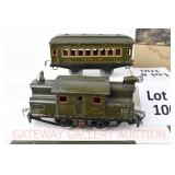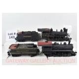 2 MARX O GAUGE: #1 William Crooks w/Tales of Wells Fargo Tender, 1st Division St. Paul & Pacific Tender, 1 Baggage, 3 Coach (All Stacks Missing, Roofs Scratched, 45 Caboose