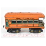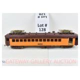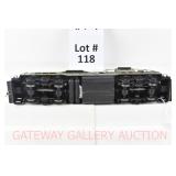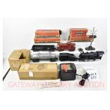 MODEL TRAINS: (409) Cataloged lots. Featured lots include MARX O GAUGE: 901 Western Pacific ABA E8 Diesels (Power Unit Has 2 Steps Missing/Rust on Trucks), 1217 Western Pacific Coach, 1007 Western Pacific Observation; 7090 Set: M-10000 Power Car, 2 Coaches, Coach Buffet, Track and Transformer in Set Box; KEN-KRAFT O SCALE: Alco Die Cast FA A-B-A Diesel Set (A Units Have Dual Motors, B Is Dummy) Decorated As Hudson Valley #1706, 1707, 1708; MAMOD STEAM: TE1A Steam Tractor 10" Long and 6 3/4" High; MISCELLANEOUS O SCALE: Brass 0-6-0 Locomotive and Tender Lettered For B&O #345; MODERN LIONEL O GAUGE: 18023 Western Maryland Shay Locomotive #6 w/Brass Detailing, Steam Railsounds, Operating Smokestack, Firebox Glow, Operates On O-54 Track OB; 11108 C&O George Washington F19 Pacific 4-6-2 Loco/Tender w/TMCC, Railsounds/Crewtalk/Towercom/Fatboy Speaker/Odyssey System/Pittman Motor, Fan Driven Smoke Unit/Diecast Loco and Tender/Operates On Minimum O-54 Curve OB and Mailing Carton; 14295 #990 Legacy Control System OB and Mailing Carton; 22972 #313 Bascule Bridge OB; 28029 Union Pacific BIG BOY 4-8-8-4 #4006 Loco/Tender w/Die-Cast Boiler, Frame And Tender, TMCC, Wireless Tether, Railsounds 4.0, All Drivers Powered, Fan Driven Smoke, Firebox Glow, Operates On O-72 Track OB And Mailing Carton; 30004 Pennsylvania Flyer Passenger Car Expansion Pack w/3 Passenger Cars, 4 Track Sections, Station Platform, Six Milk Cans, Billboard Set in Factory Sealed Carton and Mailing Carton; RAILROADIANA: Graham-White Salem #506 Locomotive Bell with Double-Acting Ringer: Bell 11" High, 11 3/4" At Base: Hanger Is 17 1/4" High, 18" Base; MTH O GAUGE: MT-5101L PRR Tuscan Red GG-1 #4876 w/Dual Motors, Horn OB; PREWAR LIONEL O GAUGE: 227 (8976)/2227B (Postwar Truck) PRR B6 Switcher OB’s (Some Flaps Missing), Prewar Coupler Added For Tender, Instructions For Loco, 1940 Instruction Book; 2332 PRR Brunswick Green GG-1 OB/Wrapping Paper/ 1949 Instruction Book