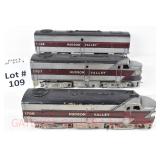 18 MARX O GAUGE: 901 Western Pacific ABA E8 Diesels (Power Unit Has 2 Steps Missing/Rust on Trucks), 1217 Western Pacific Coach, 1007 Western Pacific Observation