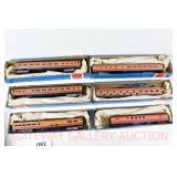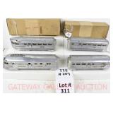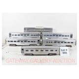 366 American Model Toys O Gauge: (6) Santa Fe Aluminum Passenger Cars: 3160 Coach, (2) Indian Lake Pullmans, Diner, Buena Vista Dome Car, Indian Arrow Observation Non Boxes