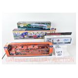 346 Modern Lionel O Gauge: US Navy 65-00637 Switcher, 16684 USN Operating Crane, 16550 USN Work Caboose/Searchlight, 04039 Flatcar/Navy Sub NO BOXES; 16952 USN Flatcar/Ertl Helicopter, 16939 USN Flatcar/Boat OB