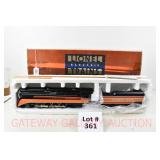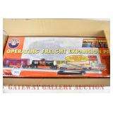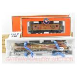 406 Modern Lionel O Gauge: 30003 Pennsylvania Flyer Operating Freight Expansion Pack w/Log Dump car, Tanker, Refrigerator Car, 5 Track Sections, Signs, Lube Kit, Pallet Loads In Factory Sealed Carton and Mailing Carton