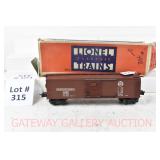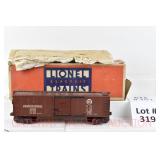 319 Prewar Lionel O Gauge: 2954 PRR Boxcar POSTWAR TRUCKS Tattered Box