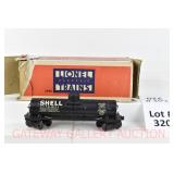 320 Prewar Lionel O Gauge: 2955 Shell Tank Car POSTWAR TRUCKS Tattered Box