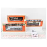 401 Modern Lionel O Gauge: 1581 Thunderball Freight Set, 1284 Allegheny Freight Set (No Track or Trans), 1662 Black River Freight Set (1 Tender Step Broken)