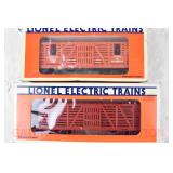385 Postwar Lionel O Gauge: 50 Gang Car (1 Blue Rubber Bumper Missing), (2) 3656 Corrals For Operating Cattle Car, Box Of Cattle, OB’s (1 Tattered) No Cattle Car; 3472 Operating Milk Car/2 Milk Stands/Milk Cans In 1 Tattered 3482 Box