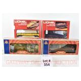 354 Modern Lionel O Gauge: 16755 #3470 Daffy Duck Animated Balloon Car, 16754 #6805 Porky Pig and Instant Martians Car, 9303 UP Operating Log Dump, 9304 C&O Operating Coal Dump Car OB