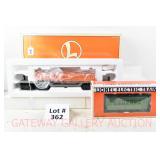 362 Modern Lionel O Gauge: 18404 San Francisco Trolley, 26971 16 Whl Depressed Center Flatcar W/Girder Load OB
