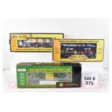 375 Rail King O Gauge: 30-7137 John Deere Stock Car, 30-7628 MTH Auto Transport Auto Carrier w/Cadillacs and Fords, 30-76563 PRR 50’ Flat w/S Gauge Marsh Wheeling Reefer Car Load OB