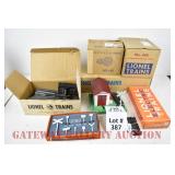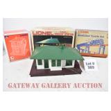 389 Modern Lionel O Gauge: 12917 #445 Switch Tower, 2133 Illuminated Freight Station, Postwar 110 Trestle Set OB