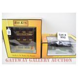 392 Rail King O Gauge: 30-90049 3 Story MTH Train Store w/Blinking Sign, 90012 Brown B&O Boxcar Work Office W/Operating Campfire/2 Figures OB