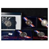 Public Auction Live & Online Coins & Currency Will sell at GATEWAY GALLERY AUCTION located at 643 Kriner Rd, Chambersburg, PA on: Monday, March 3 at 5 PM COINS/CURRENCY: (310) catalogued lots of coins & currency including Morgan & Peace silver dollars; silver certificates and peace notes; large cents; Canadian commemorative sterling silver; Gold including 1849 1 dollar, 1975 100 Balboa, 1888 Indian Princess 1 dollar, 1976 Turks & Caicos Island gold & sterling set, 1851 Liberty Head 1 dollar, 1853 Liberty Head 1 dollar, 1912 Netherlands and (5) other; bulk silver. COMPLETE LISTING BELOW AUCTIONEER’S NOTE: Coins/currency available for inspection from 3pm sale day. Coin catalog on website or call (717) 263-6512 or (800) 315-3265 to request listing. Online requests for condition reports must be made prior to day of sale. Preview Sale Day from 3 pm TERMS: Cash. Visa/MC/Discover accepted. In house bidders & online bidders using our website subject to 15% buyer’s premium discounted to 10% for cash or approved check. Live auction with live online bidding available through our website. Absentee and pre-bids accepted. Online pre-bidding available on HiBid (no live online bidding on Hibid). Statements made day of sale take precedence. CONDITION & GRADING NOTE: All items sold as-is, where-is, with no guarantee. Buyers are responsible to satisfy themselves as to condition of items. Every effort will be made to assist bidders, however YOU are the sole judge of condition. 1 (5) Canadian Coins: (2) 1996 Canada $2.00, polar bear, brilliant & frosted; (2) 2001 Canada 25¢, Spirit of Canada (BU); 2022 Canada 50¢, CP holiday train (BU) 2 (5) Canadian Mint Sets: 2022 Born in Naissance; 2020 The Signing of the UN Charter; 2020 We Remember, Bill Reid; 2023 100th Anniversary of Birth of Jean Paul Riopelle; 2021 100th Anniversary of Bluenose 3 4-Pcs. Silver Coin Set: 2022 National Treasures - American silver eagle, British Britannia, Canadian maple leaf, South African krugerrand (BU) 4 6-Pcs. Silver Coin Set: 2019 National Treasures - American silver eagle, Australian kangaroo, Austrian philharmonic, Chinese panda, Canadian maple leaf, South African krugerrand (BU) 5 Sterling 4-Coin Set: 2000 Canada birds of prey, 50¢ coins, box & papers (Proof) 6 (4) Canadian Silver Coins: 1900-2000 100th Anniversary Birth of Credit Unions in North America, 10¢ (Proof); 2001 Year of Volunteers, 10¢ (Proof); 2001 Les Petits Sauteux, 50¢ (Proof); 2001 Festivals of Canada, 50¢ (Proof) 7 (5) Canadian Silver $5.00: 2021, .999 silver, The Arms of Canada, 100th Anniversary, original mint pack; 2021, .999 silver, Our Beloved Maple, 25th Anniversary, original mint pack; 2021, .999 silver, Canada's National Colors, 100th Anniversary, in original mint pack; 2022, .999 silver, Royal Agricultural Winter Fair, 100th Anniversary, in original mint pack; 2020, .999 silver, Hudson Bay Company, 350th Anniversary, in original mint pack 8 (2) Canadian Silver $5.00: 2022, .999 silver, A Portrait of Queen Elizabeth II, in original mint pack, colorized 9 Canadian $5.00 Silver: 2022 Treasured Maple Leaf, .999 silver, Year of the Tiger, in original mint pack" 10 Poland Silver Proba: 1979, 100 ZL, mountain goat (Proof) 11 (2) Silver Bars: 1980 Tonga pa'anga (MS+) 12 Barber Quarters & V-Nickels: 1883 V-nickel, w/o cents (F-VF); 1887 V-nickel, (AG); 1898-O barber quarter (G); 1905 barber quarter (G) 13 Mercury Dimes: $15.00 face silver 14 Mercury Dimes: $15.00 face silver 15 Mercury Dimes: $15.00 face silver 16 Roosevelt Dimes: $15.00 face silver 17 Roosevelt Dimes: $15.00 face silver 18 Roosevelt Dimes: $15.00 face silver 19 Assorted Dimes: Mercury, Roosevelt, barber, $13.90 face silver 20 Kennedy Half Dollars: $20.00 face, 40% silver 21 Commemorative Silver Dollar: 1997 US Botanical Garden (Proof) 22 (4) Commemorative Half Dollars: 1989-S, US Congress, clad (Proof); 1991-S, Mount Rushmore, clad (Proof); 1994-P, World Cup USA, clad (Proof); 1992-D, Columbus Quincenterary, clad (UNC) 23 (4) Commemorative Half Dollars: 1991-S, Mount Rushmore, clad (Proof); 1994-D, World Cup USA, clad (UNC); 1992-S, Columbus Quincenterary (Proof); 1995-S, Civil War Battlefield, clad (Proof) 24 (5) Commemorative Half Dollars: 1991-1995-P WWII 50th Anniversary, clad (Proof); 2008-S, Bald Eagle, clad (Proof); (2) 2014-S National Baseball Hall of Fame, clad (Proof); 1995-S Civil War Battlefield, clad (UNC) 25 Gold: 1849 Liberty head, $1.00 gold, open wreath, no L, has pitting obverse & reverse (VF-XF) 26 (2) Foreign Silver: 1984 Hungary, UN Decade for Women, 500 forint (Proof); 1976-1985 China, UN Decade for Women, 10 yuan (Proof) 27 (2) UN Peace Medals: 1974, 1975 sterling silver, w/COA & case (Proofs) 28 Canada Peace Silver Dollar: 2023, .999 silver, w/COA & case (Proof) 29 Canada $20.00 Silver: 2000 Toronto, .925 silver, 1 oz., w/COA & case (Proof) 30 Canada $2.00 Silver: 2000 polar bear, .925 silver, w/COA & case (Proof) 31 Commemorative Silver Coin: 1999 Macau 100 patacas, w/24K gold plated cameo, .925 silver, 1 oz., w/COA & box (Proof) 32 Canada Silver Peace $50.00: 2024, .999 silver, 157.6 grams, w/COA & box (Proof) 33 Canada Silver $30.00: 2022 snowy owl on driftwood, .999 silver, 62.69 grams, w/COA & box (Proof) 34 Canada Silver $50.00: 2023 the monarch & bloom, .999 silver, 157.6 grams, w/COA & box (Proof) 35 Lincoln/Grant $1.00 Silver Certificate: series 1899, Speelman-White (CU) 36 Lincoln/Grant $1.00 Silver Certificate: series 1899, Parker-Burke (CU) 37 Lincoln/Grant $1.00 Silver Certificate: series 1899, Parker-Burke (CU) 38 Lincoln/Grant $1.00 Silver Certificate: series 1899, Teehee-Burke (CU) 39 Lincoln/Grant $1.00 Silver Certificate: series 1899, Teehee-Burke (CU) 40 Lincoln/Grant $1.00 Silver Certificate: series 1899, Teehee-Burke (CU) 41 (9) Washington $1.00 Silver Certificates: (4) 1935-B; 1935-E; 1957; 1957-A; (2) 1957-B (VG-VF) 42 (3) Hamilton $10.00 Federal Reserve Notes: 1963-A, Graham-Fowler (CU) 43 (4) Lincoln $5.00 Federal Reserve Notes: seri