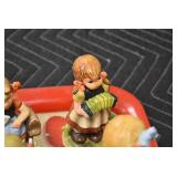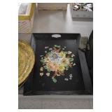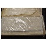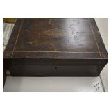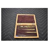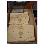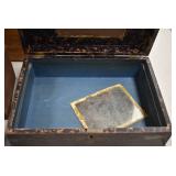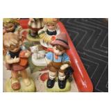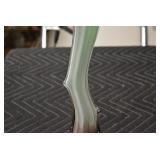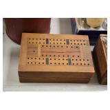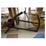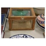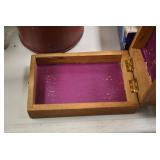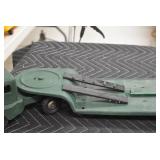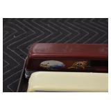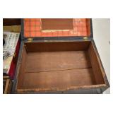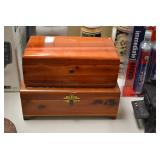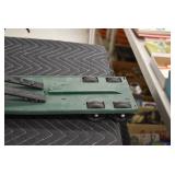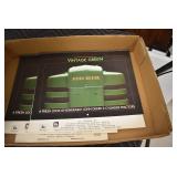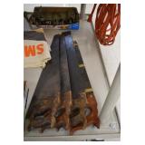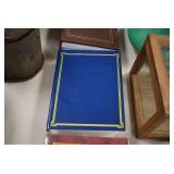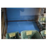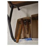 Furniture: Cedar Lined Blanket Chest, Dining Room Table w/4 Chairs, 2 Blue Upholstered Bar Stools, Drop Leaf Table, Matching 4-Shelf 2-Door Display Cabinets, 2-Shelf 2-Door Display Cabinet, Childs Desks, Vintage Green Carpenters Box w/Hand Saws, Various Corner and End Stands, Chairs, and Other
