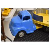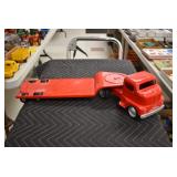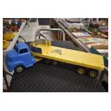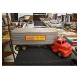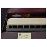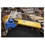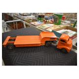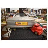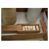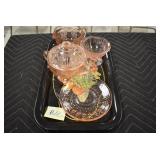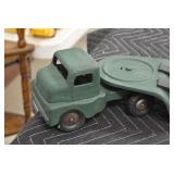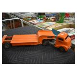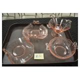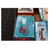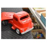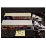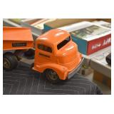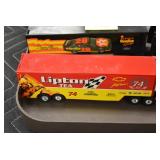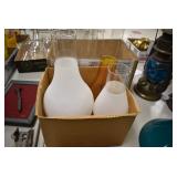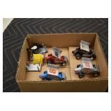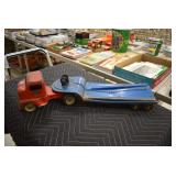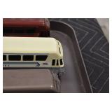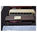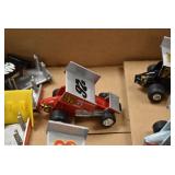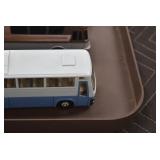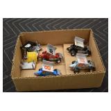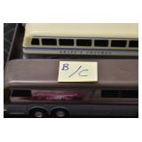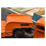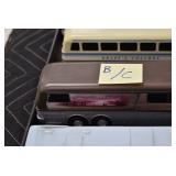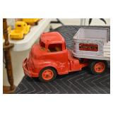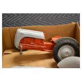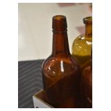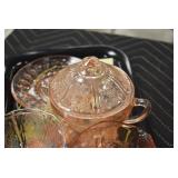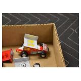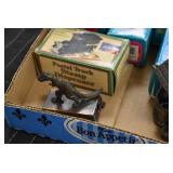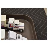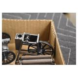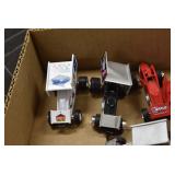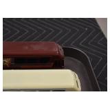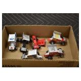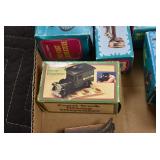 Antique Glassware: (10) Lots of (4) Various Peanut Butter Glasses, Large Amount of Fenton Glass, Pink Depression, Roseville Glass, Tiara Amber Glass, Westmoreland Glass, Vintage Glass Bottles (Some w/Labels), Miniature Glass Figure Trinket Boxes, Porcelain Figures, Glass Nesting Bowl Set, Milk Bottles, Hand Painted Japanese Porcelain Imari Style Plates, Salt and Pepper Shakers, and Other Toys and Trains: Vintage Van Lines and Other Toy Tractor Trailers, Diecast John Deere, Farmall, Case, Oliver, Allis Chalmers, and Other Diecast Toy Tractors and Implements, Vintage Toy Coach Buses, Miniature Toy Sprint Cars, Miniature Toy Tractor Trailers, Hot Wheels, Vintage Antique Cars, Tonka Giant Bulldozer, Large Amount of HO Scale Train Engines, Tenders, and Cars, and Other