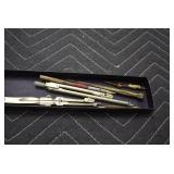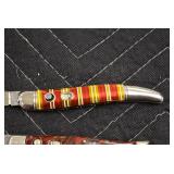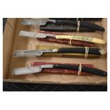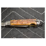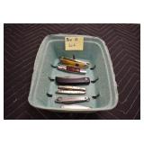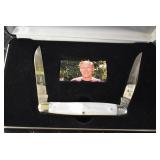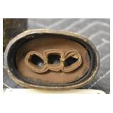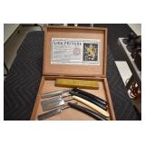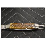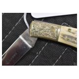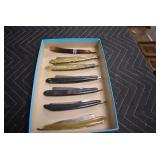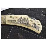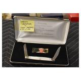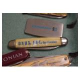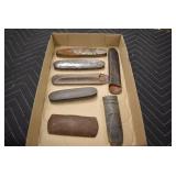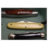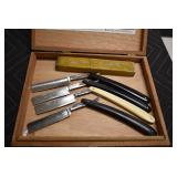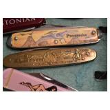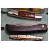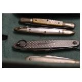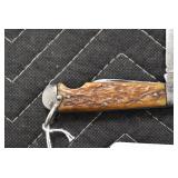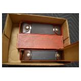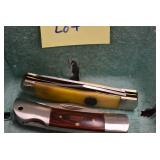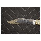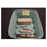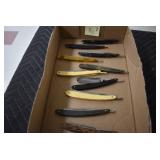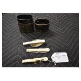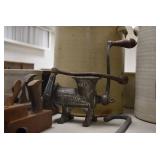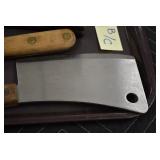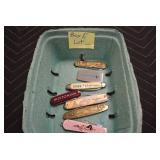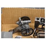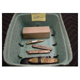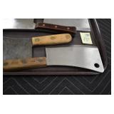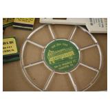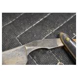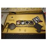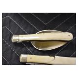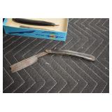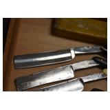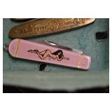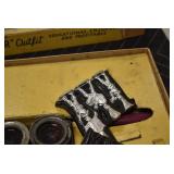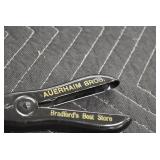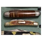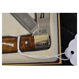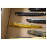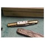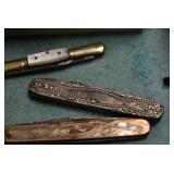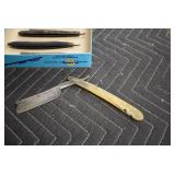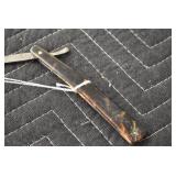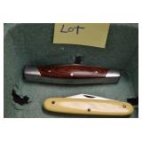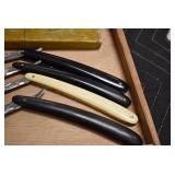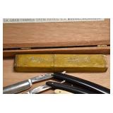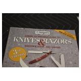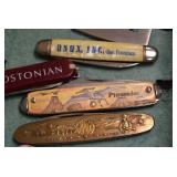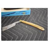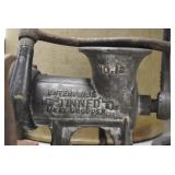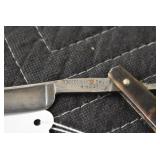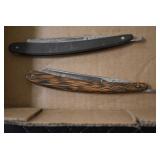 Antiques and Collectibles: Cast Fry Pans, Pottery Crocks and Jugs, German Steins, Large Amount of Straight Razors, Butcher Knives, Large Amount of Folding, Pen, and Sheath Knives, Meat Cleavers, Boyd’s Bears, Porcelain Dolls, Vintage Tractor Manuals and Books, Farmers Pocket Ledgers, Vintage Microscope, Nazi Marked and Dated 1934 Token, Vintage Binoculars, Miniature Cast Stove, Enterprise Meat Grinder, Vintage Horse Bits, Tinware, Brass Candle Holders, Magic Lantern Slides, Vintage Glasses Holders, Vintage Eye Glasses, Various Corning Lenses, The Gem Roller Organ, Vintage Cameras, Childs Runner Sleds, Reel Mower, Carved Wooden Masks, Mantle Clocks, Large Wooden Boxes, Small Cannon, Stop Sign, Beer Advertising Signs, Bad to the Bone George Thorogood Signed Shirt, and Other