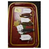 Lanterns: Dietz Lantern w/Purple Shade, Dietz No. 2 Lantern w/Matching Shade, Pennsylvania Railroad Lantern w/Blue Shade, Deitz “Little Wizard” Lantern, and Pennsylvania Railroad Lantern w/Yellow Shade