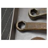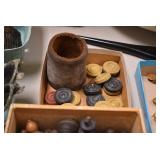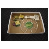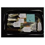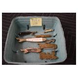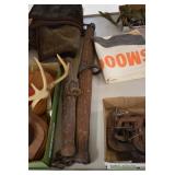 Sporting/Tool Related: Fishing Hooks, Vintage and Modern Fishing Lures, Bobbers, Fishing Line, Clamps, Axes and Hatchets, Hammers, Hammer Heads, Wrenches, Ammunition, U.S. Marked Grips, Gun and Civil War Research Books, Antlers on Plaques, Taxidermy Mounts, and Other