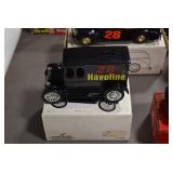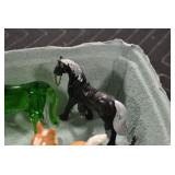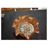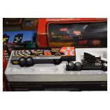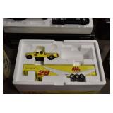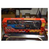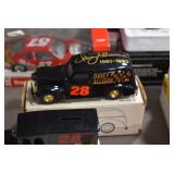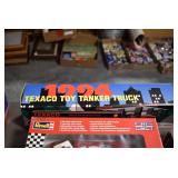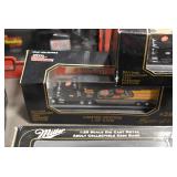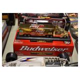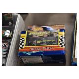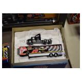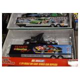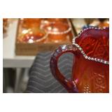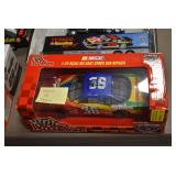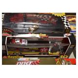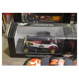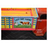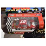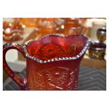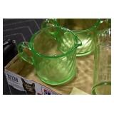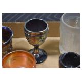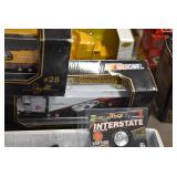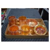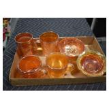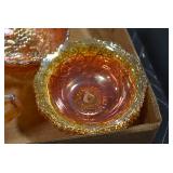Antique Glassware: Large Amount of Various Colored Carnival Glass, Peanut Butter Glasses, Local and Other Milk Bottles, Uranium Glass, Fire King Dishes, Pyrex Dishes, Glass Figures, Glass Baskets, Milk and Other Toys and NASCAR: Cast Toys, Diecast Toy Cars, Trucks, and Tractors, Code 3 Fire Engines, Miniature Toy Tractors, Vintage Tin Lazy Day Farms Truck, Signed NASCAR Shirt, NASCAR Toy Cars, NASCAR Advertising Stand-Up Cardboard Drivers, and Other