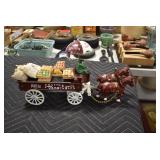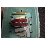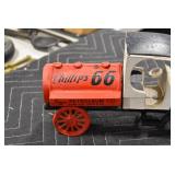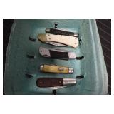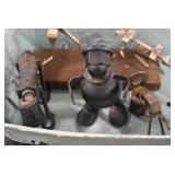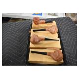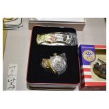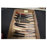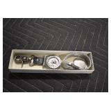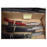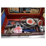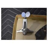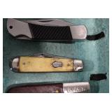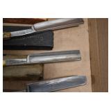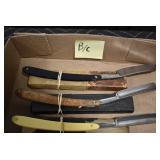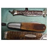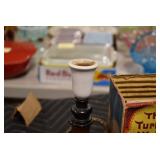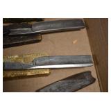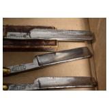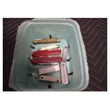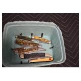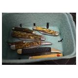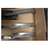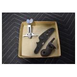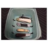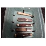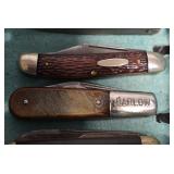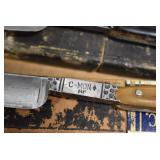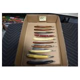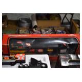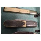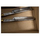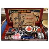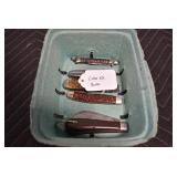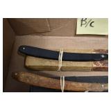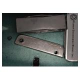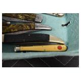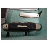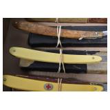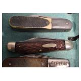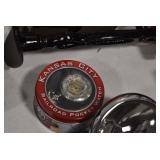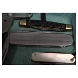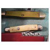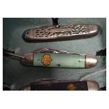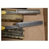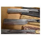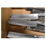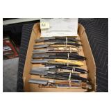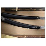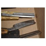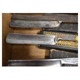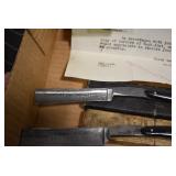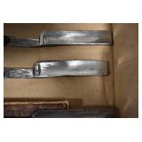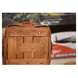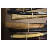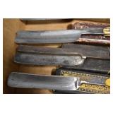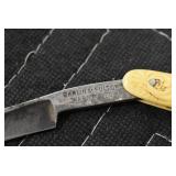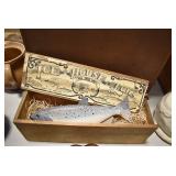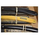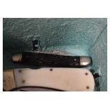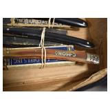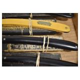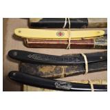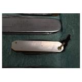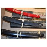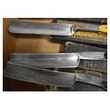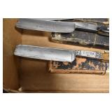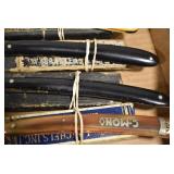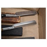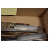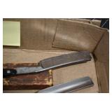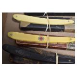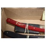 Antiques and Collectibles: Griswold Cast Fry Pans, Longaberger Baskets and Pottery, Woodware, 25+ Lots of Vintage Postcards, Large Amount of Straight Razors, Folding, Pen, and Sheath Knives, Mason Dixon Knife Club Plaques, Butcher Knives, Vintage Scales, Miniature Cast Cannons, Vintage Microscopes, Vintage License Plates and Signs, Victor “His Master’s Voice” Advertising Tin, Vintage NAPA Advertising Signs, NAPA Advertising Tin, Erector Sets, Little Big Books, Costume Jewelry, Old Books, Carved Wooden Figures, Egg Shaped Trinket Boxes, Bear Trap Salesman Sample, Military Figures, Old Military Photographs, Advertising Buttons, Vintage Fishing Licenses, Match Case Holders, Vintage Stamps, Vintage Holiday Cards, Advertising Rulers, Marbles, Draper’s Self Recording Hygrometer, Vintage Telescope, Copper Bucket, Cast Trinkets, Cats Meow Village Wooden Houses, Ball Jars, Yankee Candles, Framed Prints and Pictures, 46 Star Flag, Winter Belle Train Set, Slaw Cutter, and Other