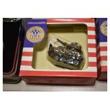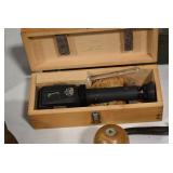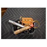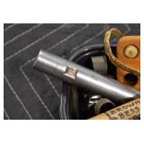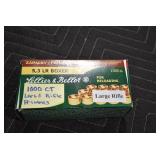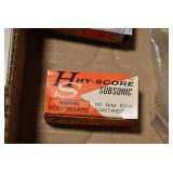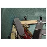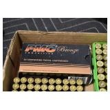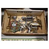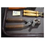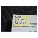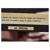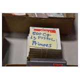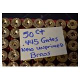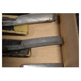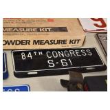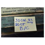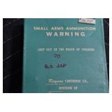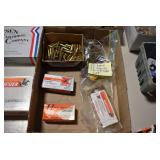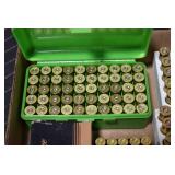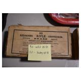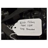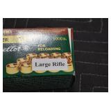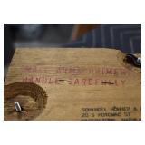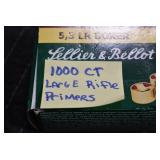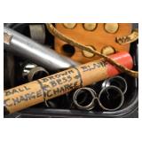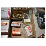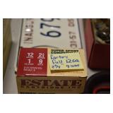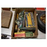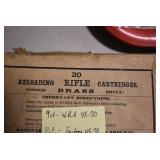 Sporting Related: Primer Shipping Box, Italian Single Cavity Bullet Mold, Daisy BB’s, Powder, 44 Special Brass, 38 Special Brass, 30 Caliber U.S. Army Ammunition, Bullets, 9mm Luger Ammunition, 45 Auto Ammunition, 45-70 Caliber Ammunition, 223 Ammunition, 6.5 Jap Ammunition, 7.7 Jap Ammunition, 445 Gates New Unprimed Brass, Gun Parts, Military Belts, Scopes, Holsters, Primers, Powder Flasks, Super Bang Caps for Toys, Various Bullet Molds, Stocks, Grips, Lee Loader, Gun Case, British Military Model L12A1 7x42 Binoculars, Winchester Flashlight, Wooden Game Calls, and Other