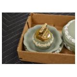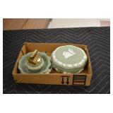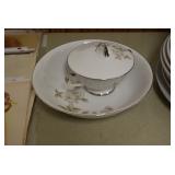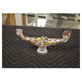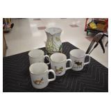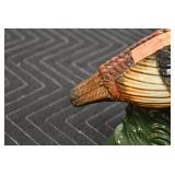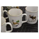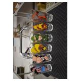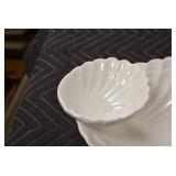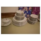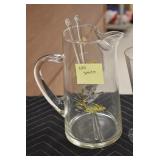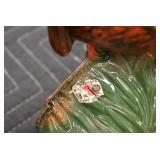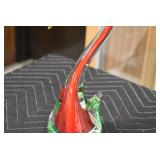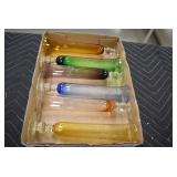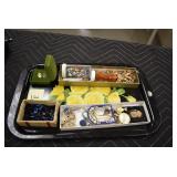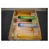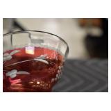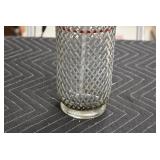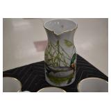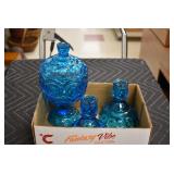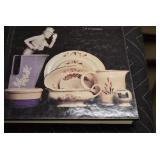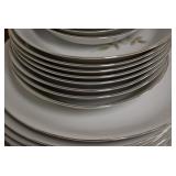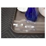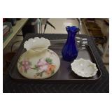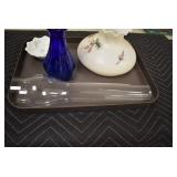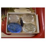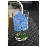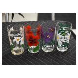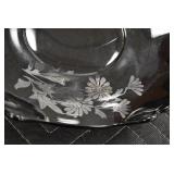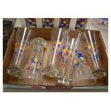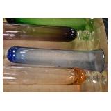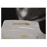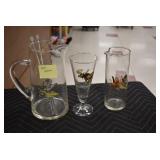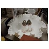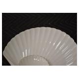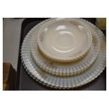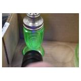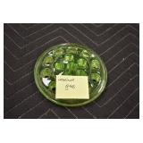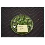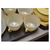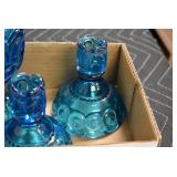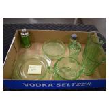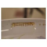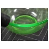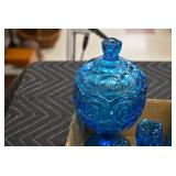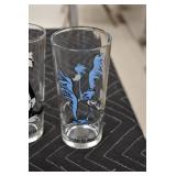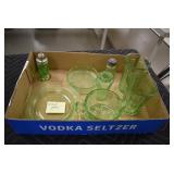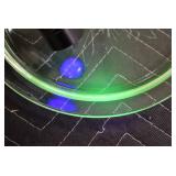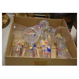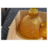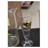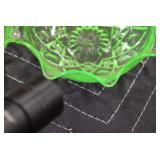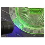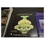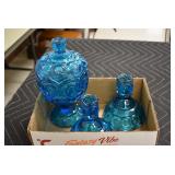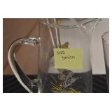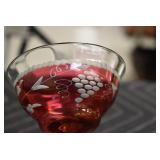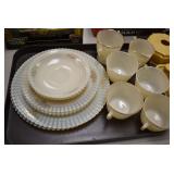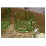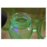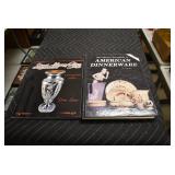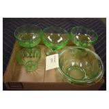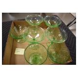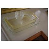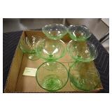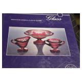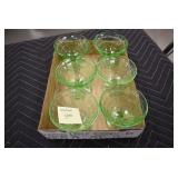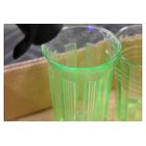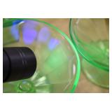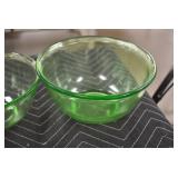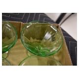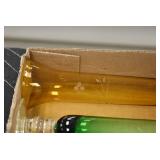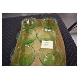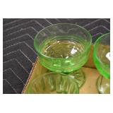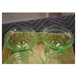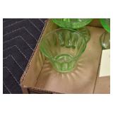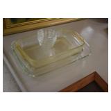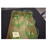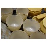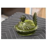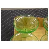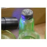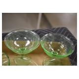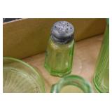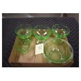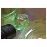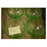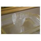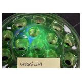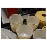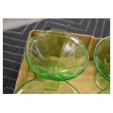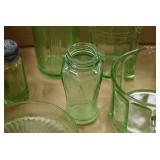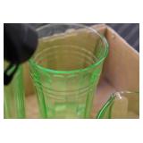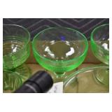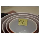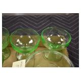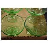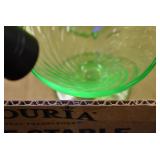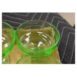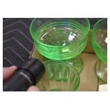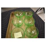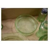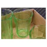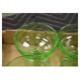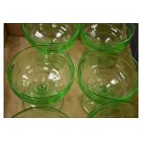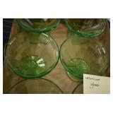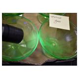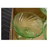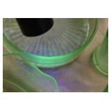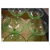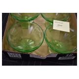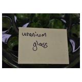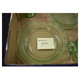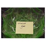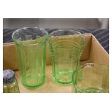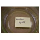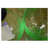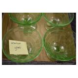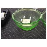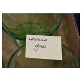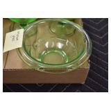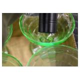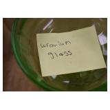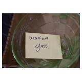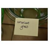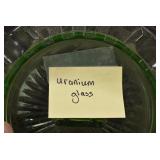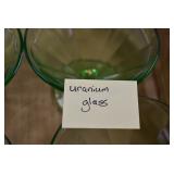 Antique Glassware: Peanut Butter Glasses, Character Glasses, Large Amount of Uranium Glass Including: Goblets, Bowls, Plates, Frog, Salt and Pepper Shakers, Cups, Casserole Dishes, and Other, Art Glass Vases, Amber Glass, Cranberry Glass, Blue Glass, Ned Smith Glassware, Chicken on Nests, Lenox Glass, Art Glass Figures, Black Glass, Large Arlen Fine China Set, Fiestaware, Pyrex Wheat Pattern Nesting Mixing Bowl Set, Corning Glass Dishes, and Other