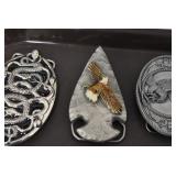 Antiques and Collectibles: Cast Fry Pans, Large Amount of Pottery, Longaberger Pottery, Costume and Other Jewelry, Stain Glass Lamps, Gone with the Wind Lamps, Statue Lamp Bases, Large Amount of Vintage Cameras, Wild Turkey and Other Beam Bottles, Beer Steins, 50+ Harley Davidson and Other Belt Buckles, Vintage Postcards, Large Amount of Folding, Pen, and Sheath Knives, Knife Sets, Vintage License Plates, Large Amount of Books, Remington Typewriter, Canes, Vintage Political and Other Pin Back Buttons, Vintage Happi Time Cash Registers, Longaberger Baskets, Black Americana Items, Vintage Carolers, Copper and Brass Items, Hummel Ornaments, Tom Clark Figures, Framed Prints and Pictures, Santa Blow Mold with Box, Large Amount of Beatles Advertising/Show Posters, Tin Advertising Signs, Old Photographs, Dale Gallon Prints, Nude Lady Posters, and Other
