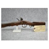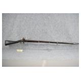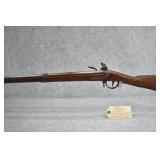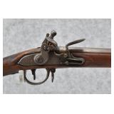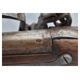 12. Harpers Ferry – Mod. 1808 – 69 Cal. Flintlock Musket – w/45” Round Barrel w/Barrel Band Blade Front & Fixed Rear Sights – Gray Finish – w/Straight Grip Full Length Wood Stock w/Metal Butt Plate & Iron Mountings – w/Ram Rod – Note: Stock Cracked Underneath in Front of Trigger Guard at Lock – Dated 1812