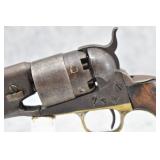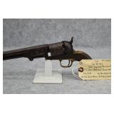 13. Colt – Mod. 1851 Navy – 36 Cal. Single Action Percussion Revolver – w/7 ½” Octagon Barrel w/Blade Front & Hammer Notch Rear Sights – Gray Finish – w/One Piece Walnut Grips – w/Strong New York Barrel Address – All Matching #s!