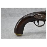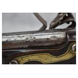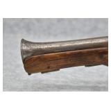 16. Lock Marked “Smith” Flintlock Blunderbuss Pistol – w/8 ½” Barrel w/1 1/8” Diameter Muzzle – Gray Finish – w/Straight Grip Wood Stock w/Metal Butt Plate & Brass Mountings