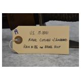 19. Ames – U.S. Mod. 1841 Naval Cutlass w/Scabbard – w/Rack #186 on Brass Hilt