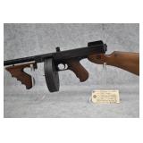 28R. Auto Ordnance – Mod. 1927A1 Thompson – 45 Auto Cal. Semi-Auto Rifle – w/18 ½” Barrel w/Blade Front & Post Rear Ladder Sights – Blued Finish – w/Smooth Wood Butt Stock, Pistol Grip & Forend Grip w/Metal Butt Plate – w/Drum Mag – w/Case & Violin Case For Gun w/Key (CANNOT GO TO MARYLAND!)
