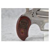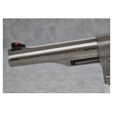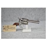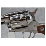 46R. Ruger – Mod. Vaquero – 44 Mag. Cal. Single Action Revolver – w/4 ½” Barrel w/Round Blade Front & Groove Rear Sights – Nickel Finish – w/Factory Silver Eagle Wood Grips