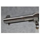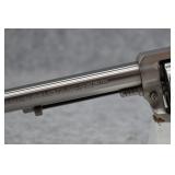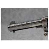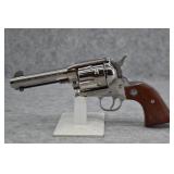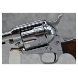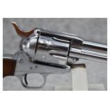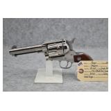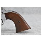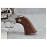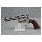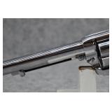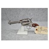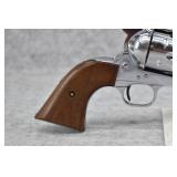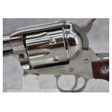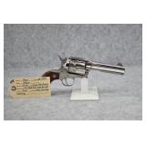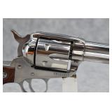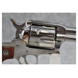 47R. Ruger – Mod. Vaquero – 45 Colt Cal. Single Action Revolver – w/4 ½” Barrel w/Blade Front & Groove Rear Sights – Nickel Finish – w/Factory Silver Eagle Wood Grips