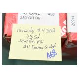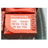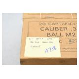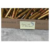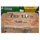 Bulk Ammunition: (2) Sealed 300 Count Cans of 303 British in Bandoliers, Sealed Case of 900 Count of 8mm Caliber, Sealed Spam Can of 7.62x54R Caliber, 450 Count of 7.62x54R in Wooden Crate and Spam Cans, 200 Count of 30-06 Civilian Marksmanship Program Ammunition, 550 Count of 45 ACP Caliber, 400 Count of 44 Rem. Mag. Caliber, 480 Count of 5.56 Caliber, 800 Count of 40 S&W Caliber, 220 Count of 7.62x54R Caliber, 260 Count of 223 Sierra Blitzking, 900 Count of 9mm Luger, 600 Count of 22LR Caliber, 1500 Count of 22LR Caliber, 700 Count of 45 ACP Caliber, 600 Count of 38 Special Custom Reloads, 700 Count of 9mm Luger Caliber, 264 Count of 30 Caliber M72 w/EN Block Clip and Original Ammunition Can, 200 Count of 380 Auto Caliber, 2000 Count of 22LR Caliber, and Other